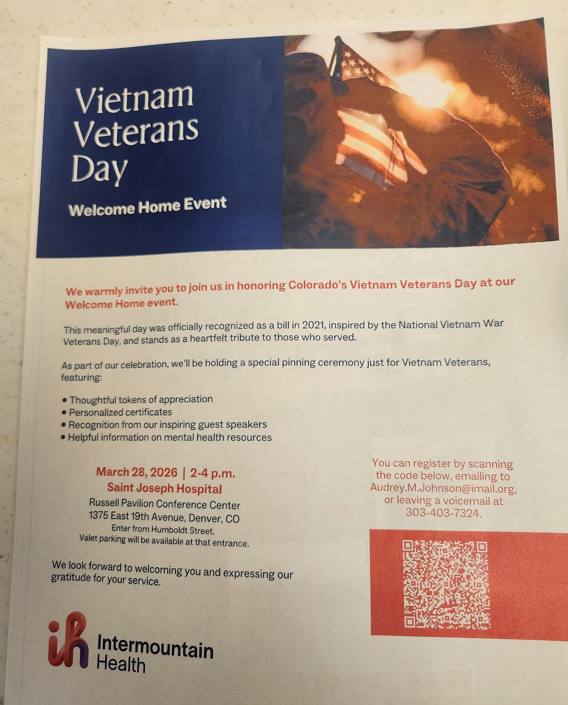 - Rocky Mountain Honor Flight and Channel 9 News telethon is April 9th. Separate email has gone out with details. Please think about joining us. It is for a very special cause.