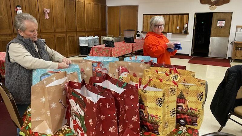 Tami Bowman and Barbara Robinson put the finishing touches on the Gifts for the children at Ronald McDonald House